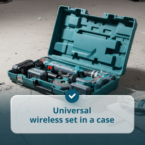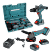 • Universal cordless kit in a case – two tools in one set: an impact drill and an angle grinder with 2 batteries and a charger for various household tasks.