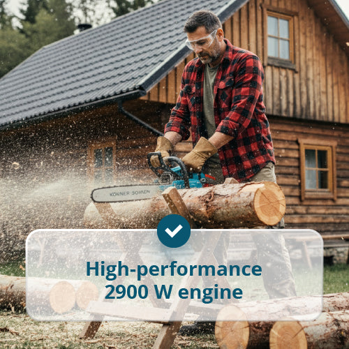 • High-performance 2900 W engine – easily handles hardwoods and medium-sized trees.