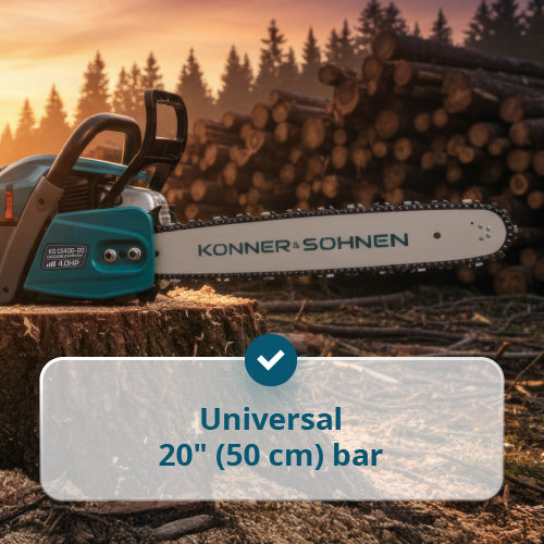 • Universal 20" (50 cm) bar – provides ideal balance for felling, trimming, and firewood preparation.
