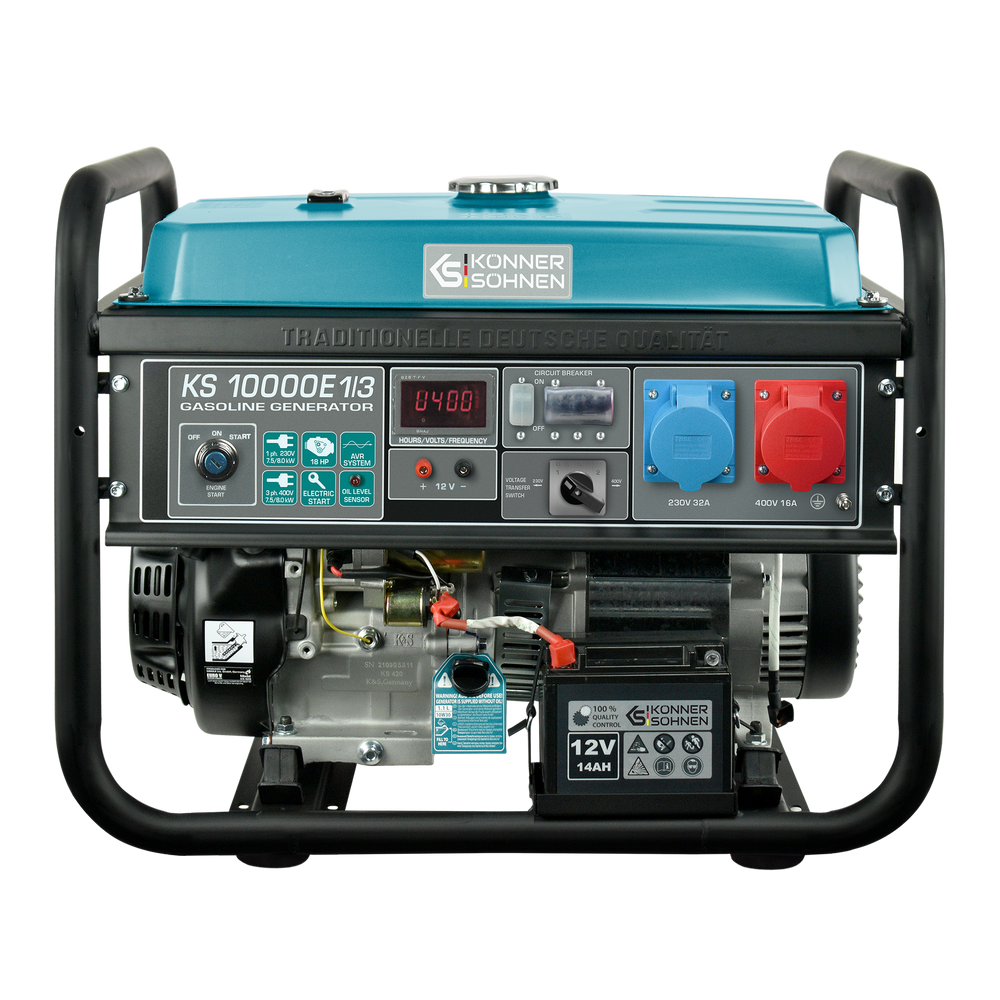 Könner & Söhnen motors have easy start and low vibration. The KS 10000 range of gasoline generators is equipped with a reliable 1-cylinder 18 hp engine.