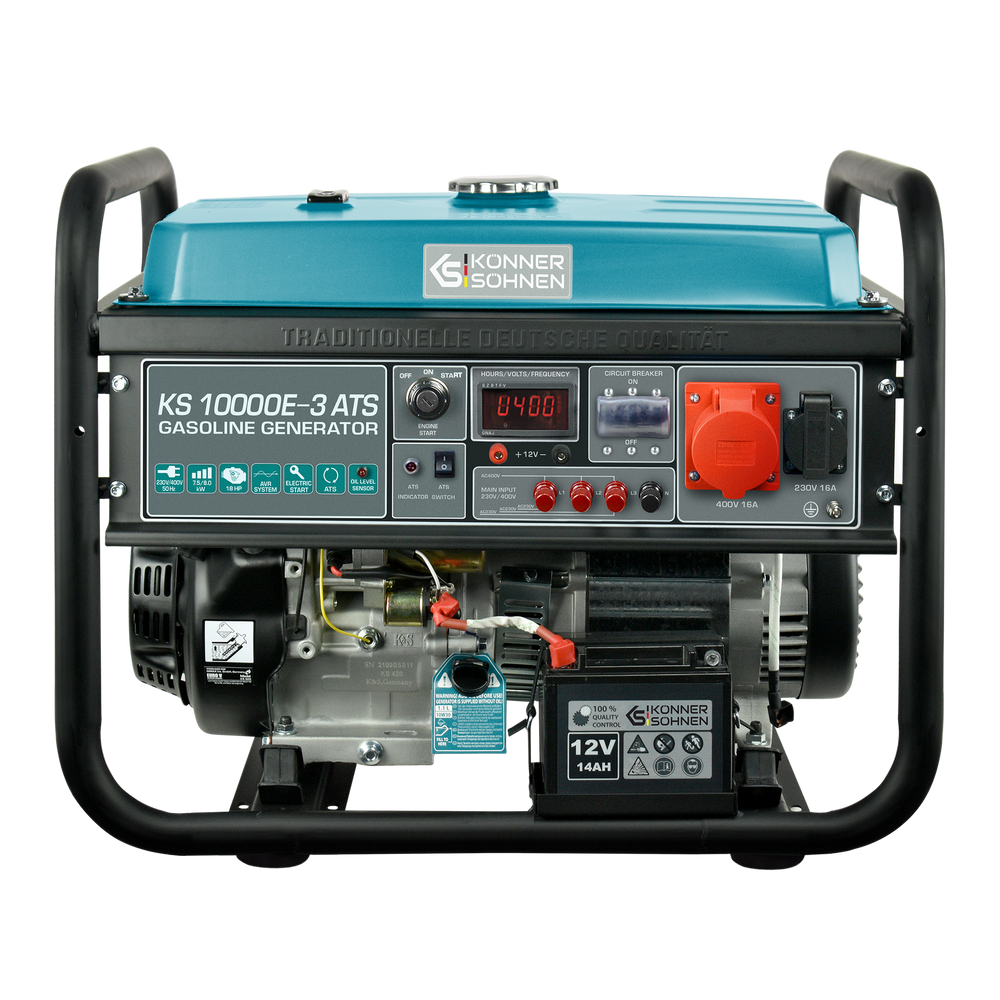 “Könner & Söhnen” generators are equipped with an enlarged steel fuel tank, which extends the generator’s operating time without refueling. The fuel level indicator is located on the tank for ease of use.