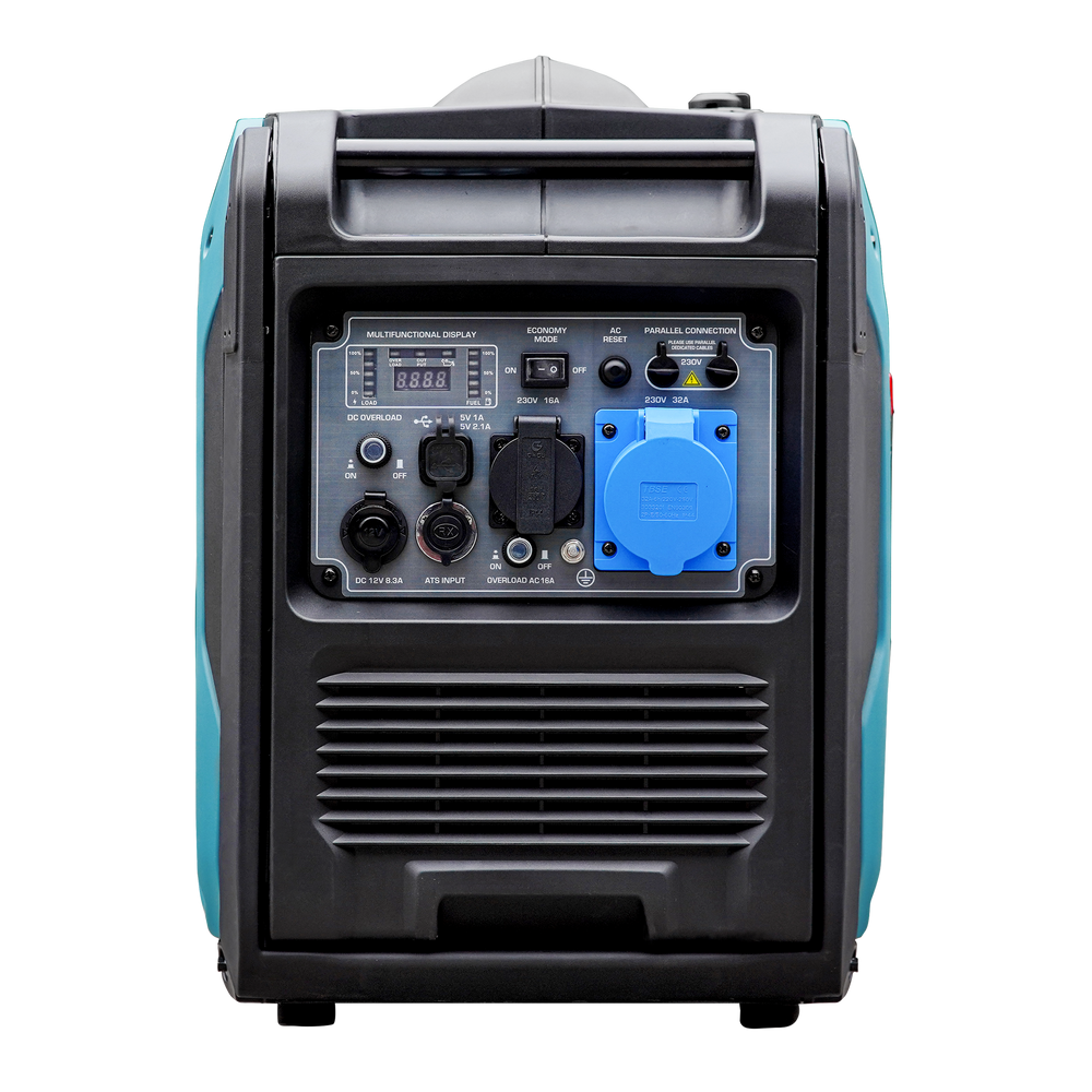 The integrated microprocessor-controlled electronic unit controls the generator operation and provides the most stable frequency of 50 Hz and voltage of 230 V. This makes the generator ideally suited for sensitive and high-precision electronics, electronic measuring instruments, medical devices, heating boilers, etc.