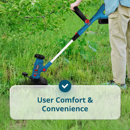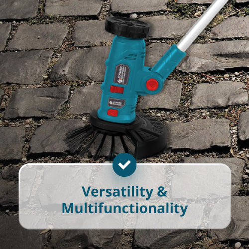 • Reguleeritav mootorikorpus — võimaldab muuta nurka ja asendit takistuste all töötamiseks. Vahetatavad töömoodulid — teostavad ülesandeid nagu muru trimmimine, servade lõikamine, pühkimine ja vuukide puhastamine.