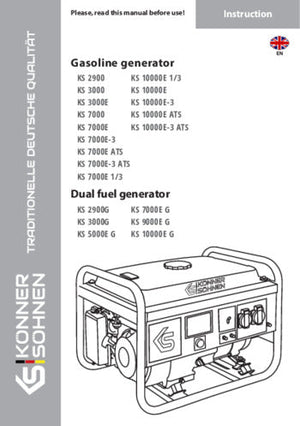 Könner & Söhnen mootoritel on lihtne käivitamine ja madal vibratsioon. KS 10000 bensiinigeneraatorite valik on varustatud usaldusväärse 1-silindrilise 18 hj mootoriga.