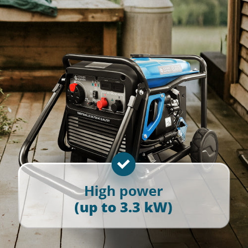 • Transpordikomplekt – generaator on varustatud kokkupandava käepideme ja ratastega mugavaks transportimiseks, mis oluliselt laiendab selle kasutusvõimalusi.