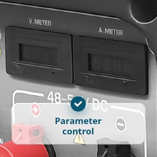 • Automaatne töö – AUTO-režiimis jälgib generaator iseseisvalt aku pinget, käivitub, kui pinge langeb alla 50V, ja peatub, kui väljund jõuab 54,5 ± 0,5 V ja vool langeb alla 20A.